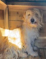 Die kleine OPHELIA lebt aktuell mit einer weiteren Hündin in einem sehr vollen Welpenkennel. Als wir sie besuchten, blieb sie in ihrer Hütte sitzen und zeigte kein Interesse an uns. Weder Leckerchen noch freundliche Ansprache konnten sie überzeugen die Hütte zu verlassen, sie wollte einfach ihre Ruhe. Als wir sie in der Hütte bedrängten zeigte sie deutliches Abwehrverhalten. Anfassen ließ sie sich nicht.